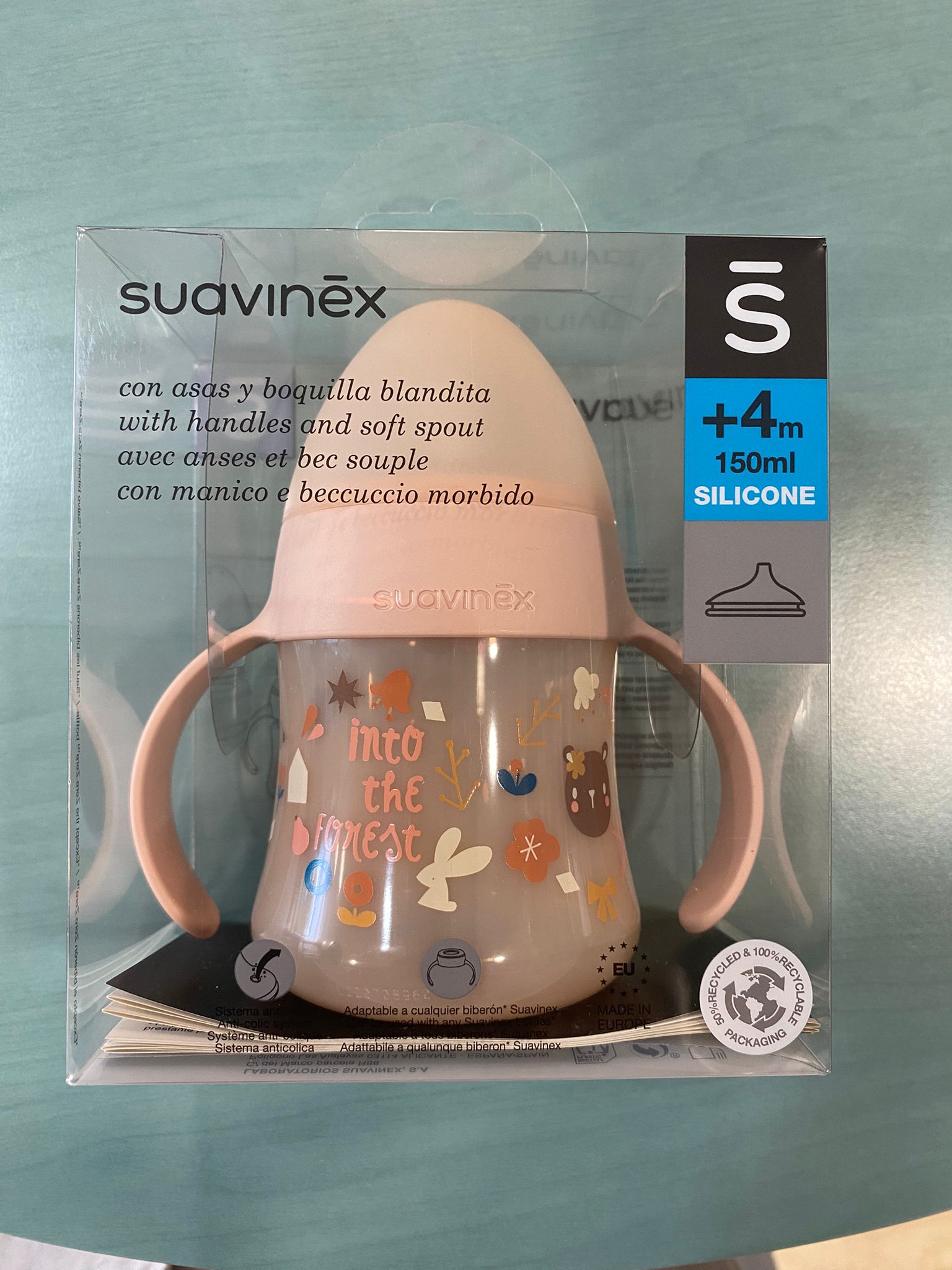 Incorpora asas adaptadas a manitas pequeñas, la rosca con asitas es adaptable a cualquier biberón de Suavinex, exceptuando el biberón Zero.ZeroTM.